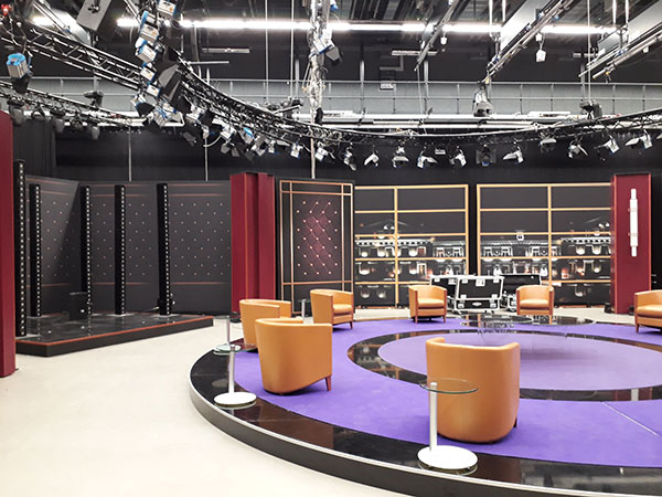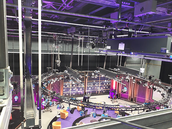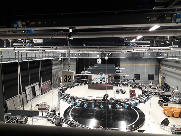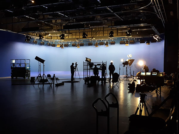 Diese kongeniale Brut-…ähh, Produktionsstätte für TV-Shows (wahlweise mit oder ohne Publikum), aber auch für Kino- und Werbefilme, bietet rund 760 m2 zur freien Entfaltung. Und horchet auf, ihr Entwickler-Studios und Gaming-Pioniere! In der 200 m2 großen Bluebox mit Hohlkehle und Grundlicht könnt Ihr Euch im Rahmen Eurer Virtual Reality-Produktionen ordentlich austoben. Doch das ist noch nicht alles! Dank einer Horizontschiene ist das Studio mit Hintergründen in schwarz (Molton) und weiß (Nesselvorhang) visuell in zwei Hälften teilbar. Wie genial ist das denn?!